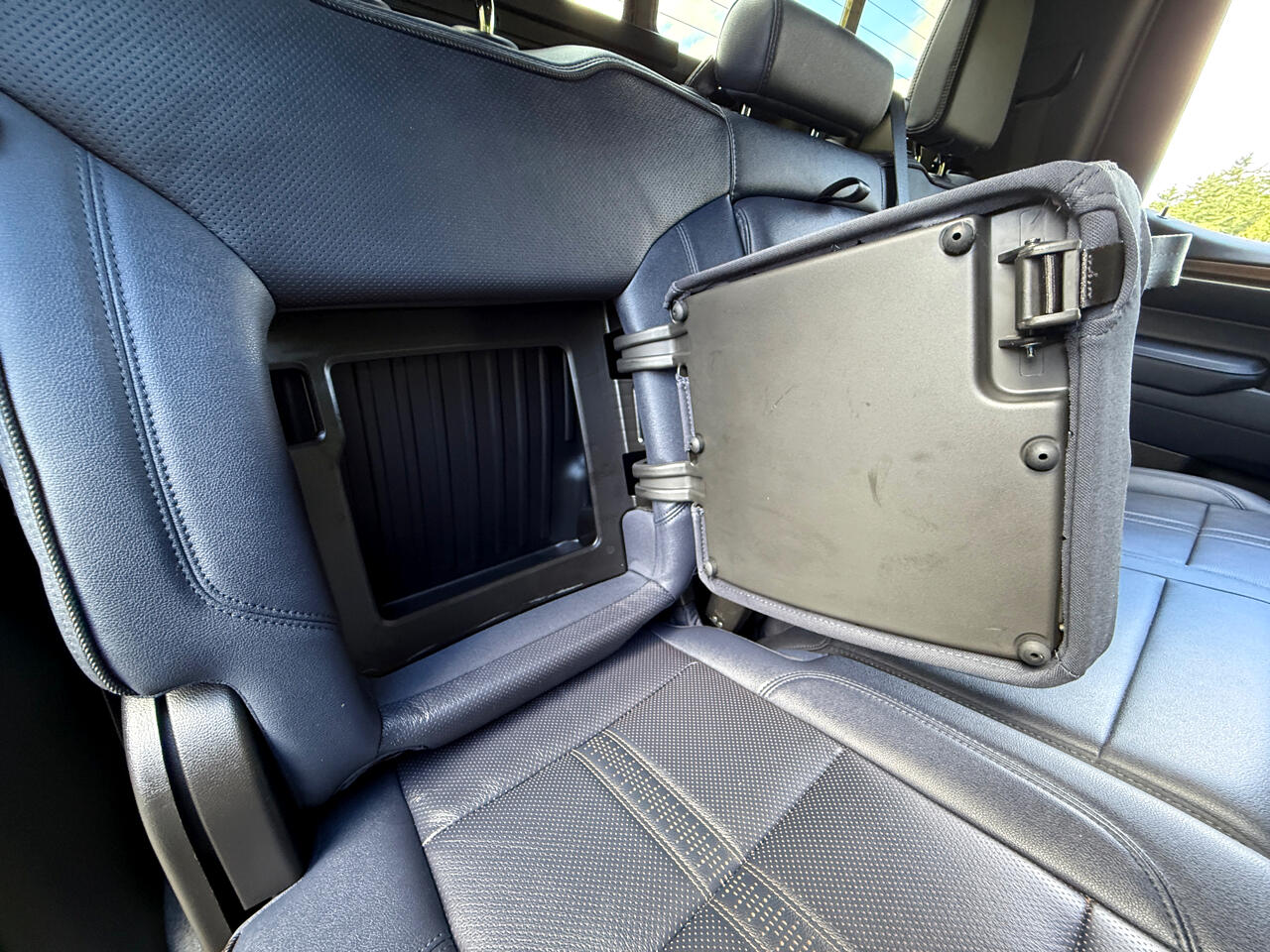 • Seat, Up-level Rear with Storage Package 60/40 folding bench for Crew Cab models, includes full-length bench seat, seatback storage on left and right side, center fold out armrest with 2 cupholders, full cab width underiseat storage, (includes child seat top tether anchor) (Rear seat features leather seating surfaces.)